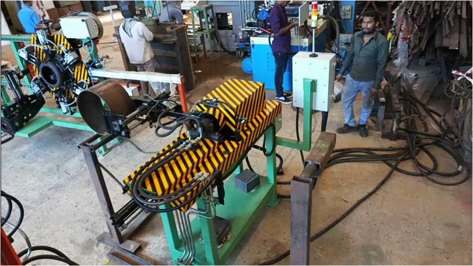 Hydraulic gripper with pneumatic support mounted on the Robo arm, pick the rolled band from Band positioner and load to the Butt welding machine.