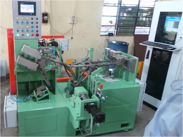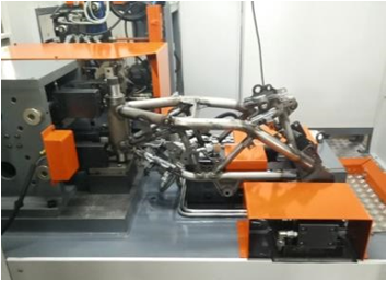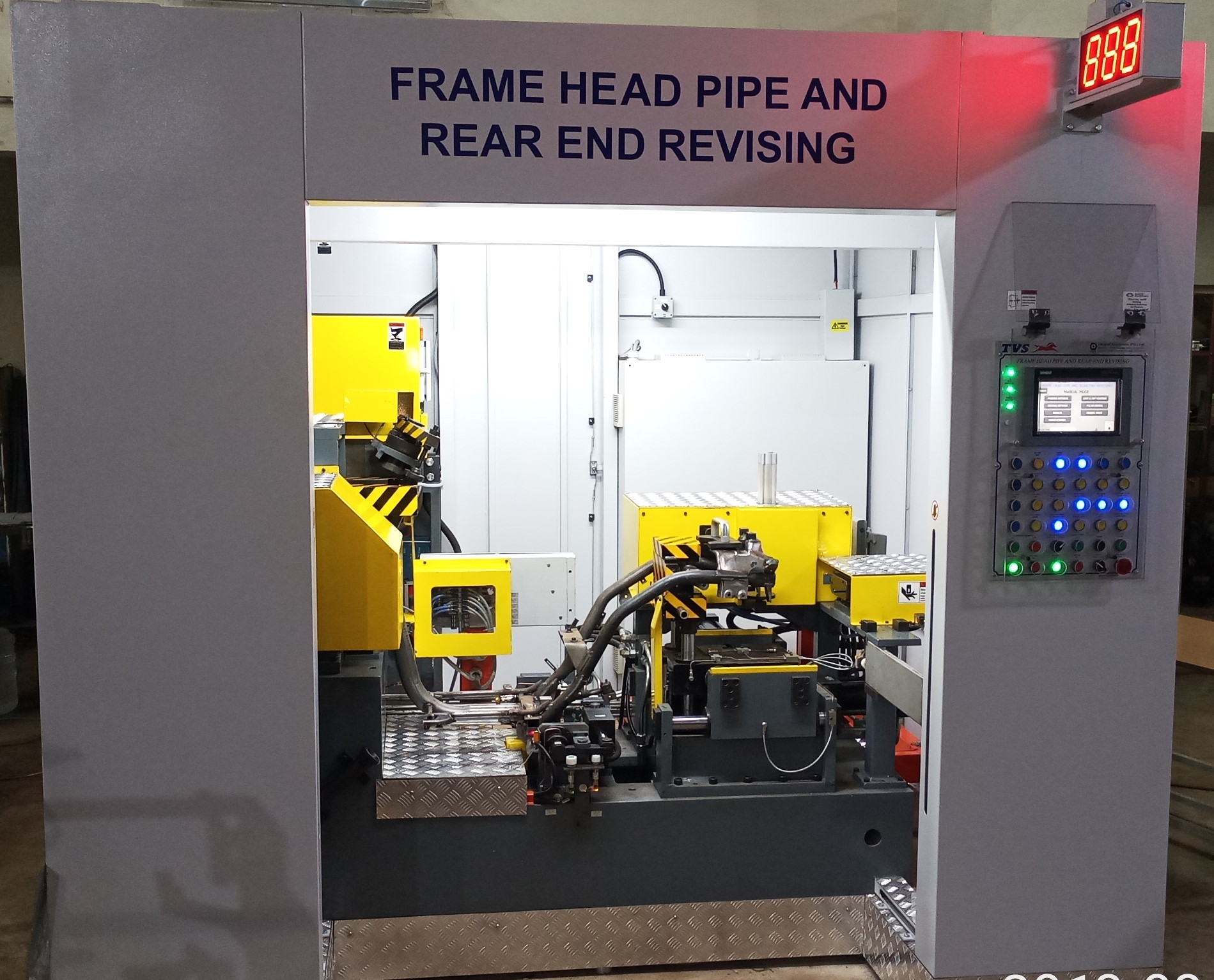 Scooty Pep Frame Revising Machine is a semi-automatic machine to measure Head pipe tilt & Head Pipe offset is corrected within the specified tolerance limit.