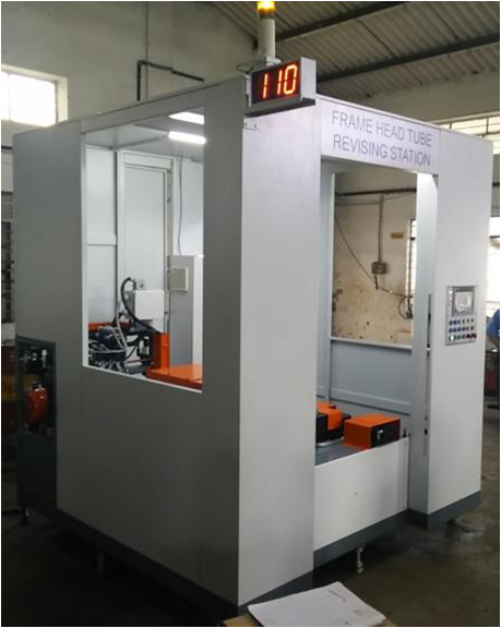 Appachi Frame Revising Machine is a semi-automatic machine to measure Head pipe tilt ,Head Pipe offset & Tail Offset is corrected within the specified tolerance limit.